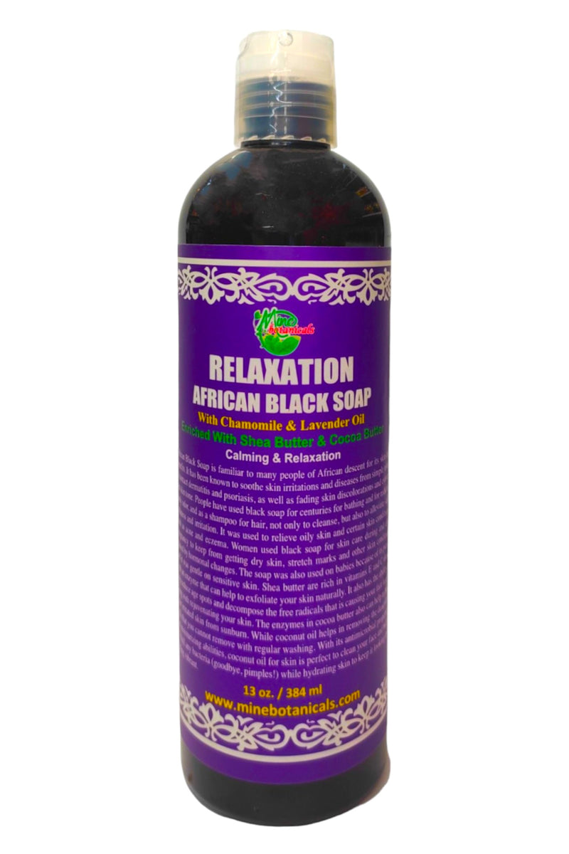 Relaxation Liquid Black Soap With Chamomile & Lavender oilEnriched with Shea Butter & Cocoa butterCalming & RelaxationDetails:Â African Black Soap is familiar to many people of African descent for its skin... $11.99 -